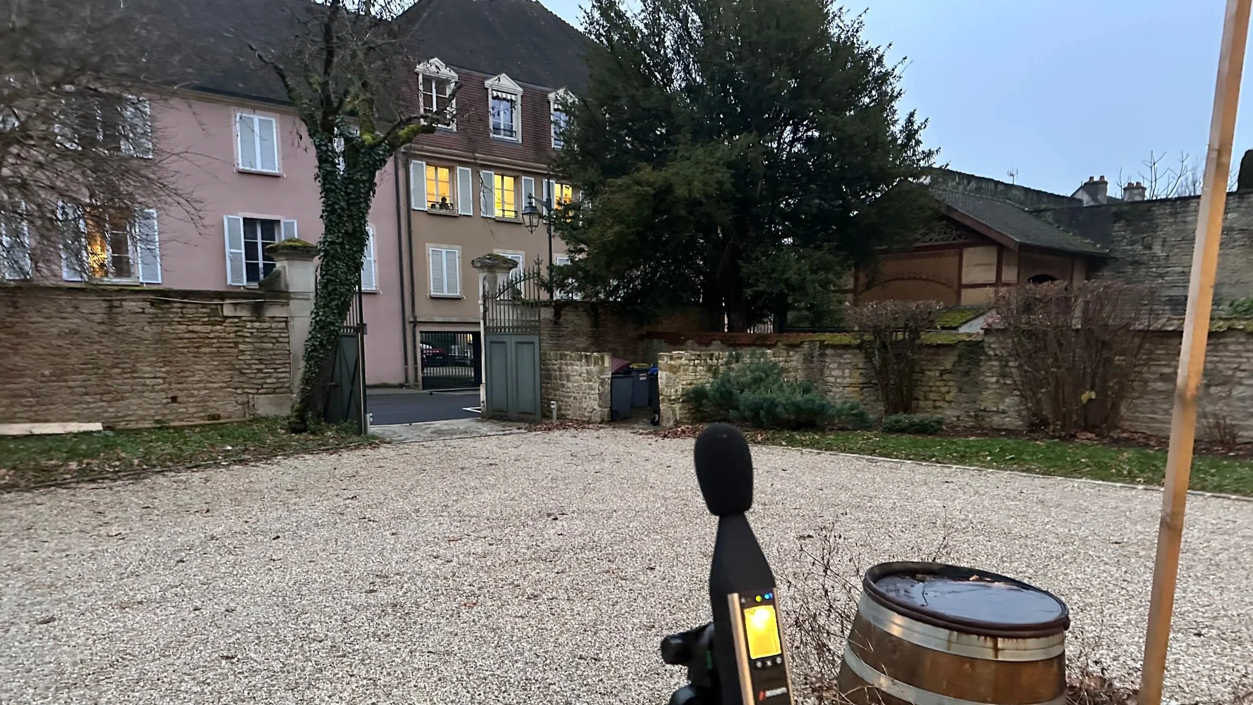 Les mesures sont réalisées au domicile du riverain plaignant, généralement aux fenêtres des pièces principales comme les chambres ou le salon, ou dans le jardin si la gêne est perçue en extérieur. Nous positionnons le sonomètre conformément aux prescriptions de la norme NF S31-010 : à une hauteur comprise entre 1,2 et 1,5 mètre du sol, à au moins un mètre de toute surface réfléchissante, et en évitant les zones de turbulence d'air comme les angles de bâtiments.